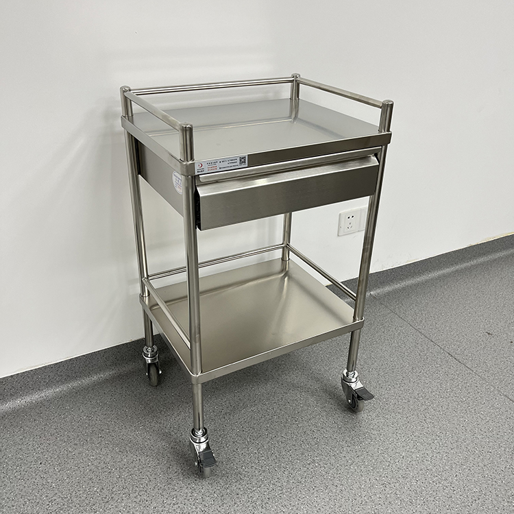 3.两层设计,面板三面均设计有防护栏,有效防止物品掉落。一体化焊接成型。